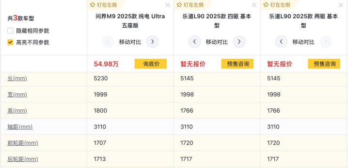 乐道L90是基于蔚来的NT3.0平台打造,用的是蔚来ET9的同款340kW电机,另外这款车搭载了全域的900V高压平台,再结合其bass方案下不到20万的价格,单论电机和新平台,这款车的性价比还是非常高的。乐道L90的四驱版本的电机总功率为440kW,高于问界M9的390kW,另外,在充电平台上,乐道L90也是处在领先位置,要知道,智己最新款的LS6也才达到了准900V的水平,而竞品中的问界M9还搭载800V高压平台。